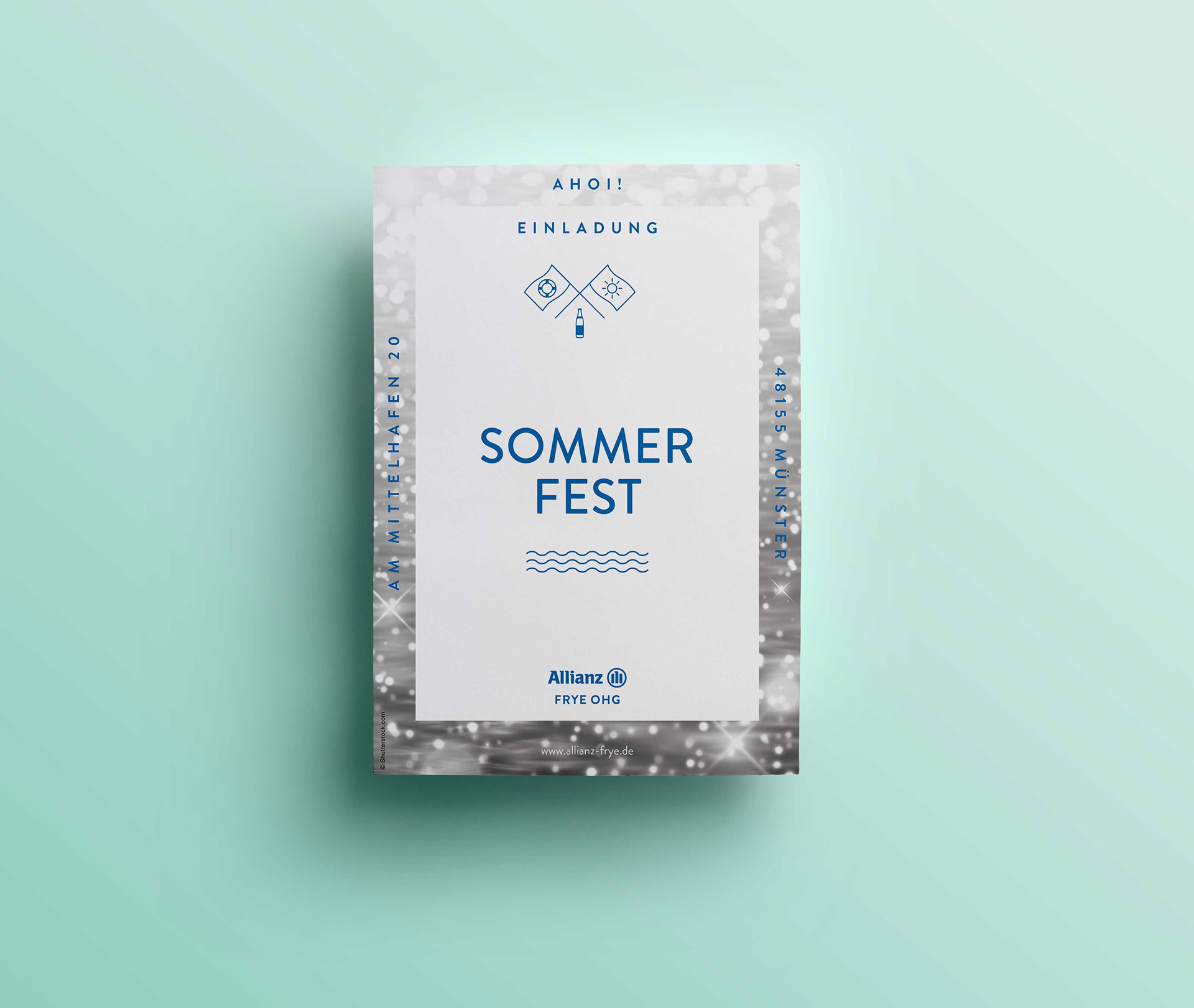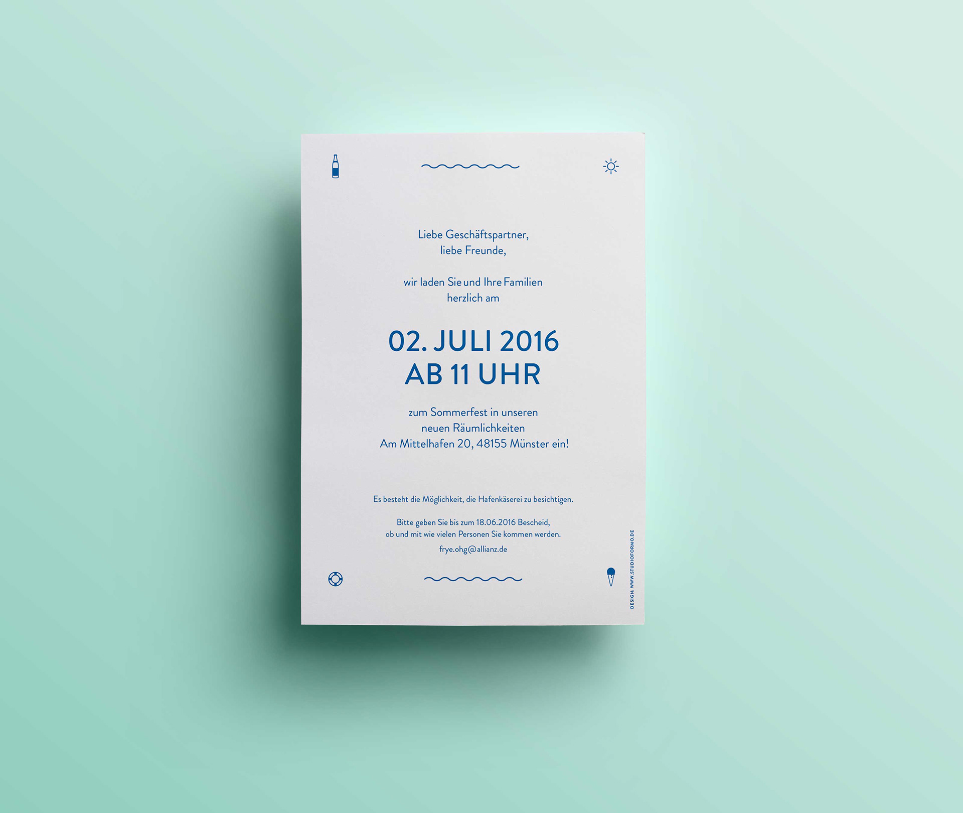 Nah am Wasser gebaut! Einladungskarte zu der Büroeinweihung.