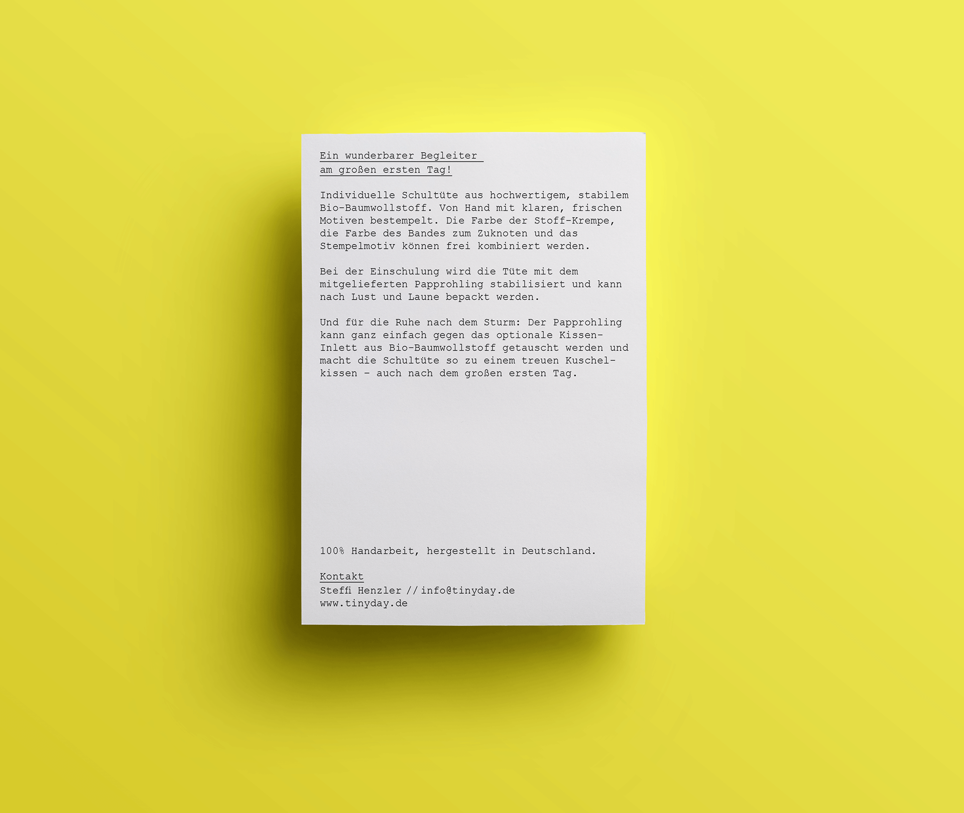 Corporate Design für mein Label tinyday. Logo, Naming, Web-Design, Produkt-Design Foto-Konzept www.tinyday.de